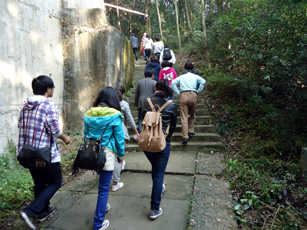 一路上,臺(tái)階時(shí)高時(shí)低,地勢(shì)時(shí)陡時(shí)緩,很快,就有人喊著走不動(dòng)了,而有人則依然健步如飛……大隊(duì)人馬很快分散成了一條長(zhǎng)長(zhǎng)的隊(duì)伍,在蜿蜒的山路中向著高處奮勇攀登!