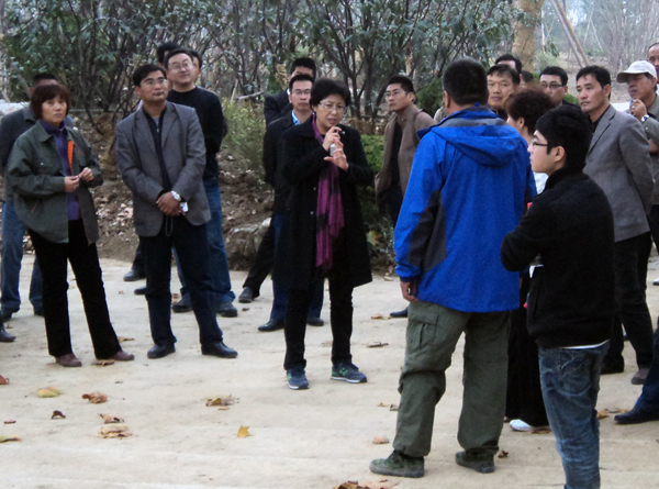 云龍湖珠山景區(qū)工程是徐州市2011年的一項重點綠化工程,李局長對該項目一直非常關(guān)心和重視,繼9月23日陪同市委書記曹新平視察工地之后,此次,園林局又組織幾個重點景觀工程的項目經(jīng)理和主要負責人來工地觀摩指導,察看工程進度。在工地現(xiàn)場,李局長邊走邊看,并不時詢問。當行至榆樹下沉廣場時,李局特別指出此處的整體布局、植物配置、景石擺放等都很合理,很有特色,為工程效果增色不少,并提出新的指示,希望我方能夠再接再厲,精益求精,將該項目打造成徐州2011年的一項精品工程。
