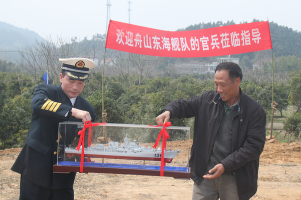3月31日上午12點(diǎn),舟山東海艦隊(duì)某支隊(duì)官兵們的車輛到達(dá)泉口苗木基地,現(xiàn)場(chǎng)舉行了熱烈的歡迎儀式。儀式由杭州市園林綠化工程有限公司總經(jīng)理張炎良主持,杭州市林水局副局長(zhǎng)楊文鐘代表杭州市政府對(duì)官兵們的到來(lái)表示了熱烈的歡迎,并發(fā)表了熱情洋溢的致辭;舟山東海艦隊(duì)某支隊(duì)呂政委代表官兵們致答謝辭,并贈(zèng)送給楊副局長(zhǎng)一個(gè)海軍軍艦?zāi)P停磉_(dá)他們對(duì)杭州市政府送樹行為的感謝。