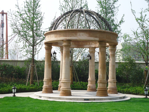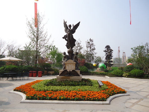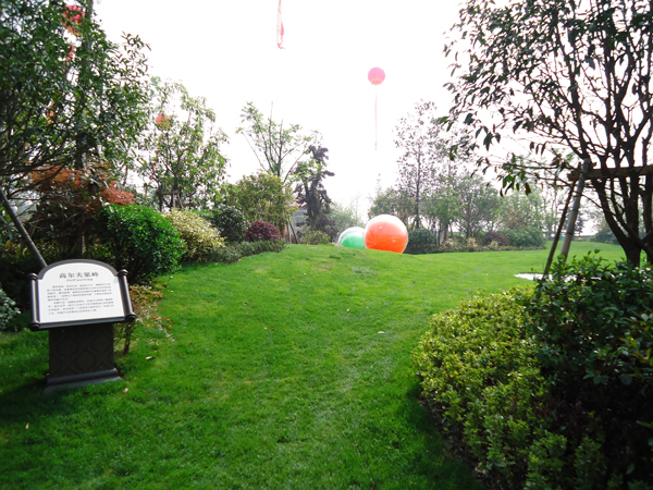 更引人注目的,還有銷售展示中心前面的雕塑噴泉,該噴泉運(yùn)用花崗巖整石雕刻拼接而成,工藝極其復(fù)雜,自上而下不斷灑落的水花,營造出一片清涼;無以復(fù)加的鏤空鐵藝圓頂繁復(fù)花紋和拱門的石材立面裝飾的皇家景觀亭,精致中透露出大氣;潺潺溪流、霧氣繚繞的人工溪澗,如夢(mèng)似幻;大面積的高爾夫果嶺草坪蜿蜒起伏,華貴雍容……