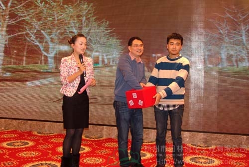 會議首先由陳航宣讀獲獎文件,共有121個項目分獲2012年度浙江省“優(yōu)秀園林工程”金、銀、銅獎,其中金獎48個,銀獎57個,銅獎16個。其中,杭州園林承建的中國鐵建?國際城(杭州)示范區(qū)園林綠化工程和中河北段綜合整治與保護開發(fā)工程01標(biāo)分獲金、銀獎。吳雪樺、施奠東、胡理琛、張曉紅等領(lǐng)導(dǎo)和專家為獲得金獎的企業(yè)頒獎,工程總監(jiān)高國良上臺領(lǐng)獎。