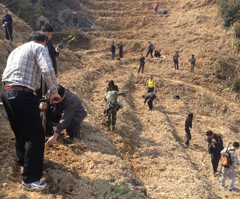 此次種植的是油茶小苗,為了提高樹苗的成活率,專門請(qǐng)來當(dāng)?shù)剞r(nóng)民,詳細(xì)講解種植的步驟、間距等種植要點(diǎn)及注意事項(xiàng)。隨后,大家兩人一組,興致高昂地開始了種樹,挖穴、種苗、填土……經(jīng)過一個(gè)小時(shí)的緊張勞動(dòng),500多株油茶樹就種好了。