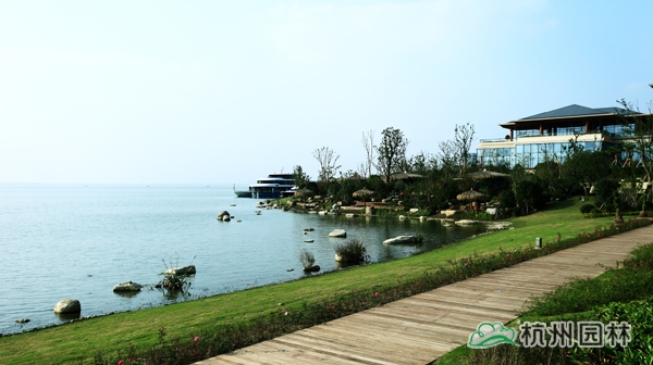 以人為本,尊重自然,貫穿于設(shè)計(jì)到施工的各個(gè)環(huán)節(jié)。該項(xiàng)目緊臨東太湖,為了最大限度地保護(hù)太湖水域環(huán)境,各個(gè)施工環(huán)節(jié)中,因地制宜,因材施用,在駁岸處理中,通過(guò)草坪入水、水生植物種植、景石運(yùn)用等方法,在充分保護(hù)原有湖岸的基礎(chǔ)上,加強(qiáng)對(duì)湖水水質(zhì)的凈化,營(yíng)造出生態(tài)、自然的湖岸景觀,成為項(xiàng)目中的一景。此外,種植的植物,大量選用當(dāng)?shù)剜l(xiāng)土樹種,既營(yíng)造出濃郁的景觀特色,又有利于提高植物的成活率,減少后期的養(yǎng)護(hù)費(fèi)用,有效節(jié)約了工程成本。