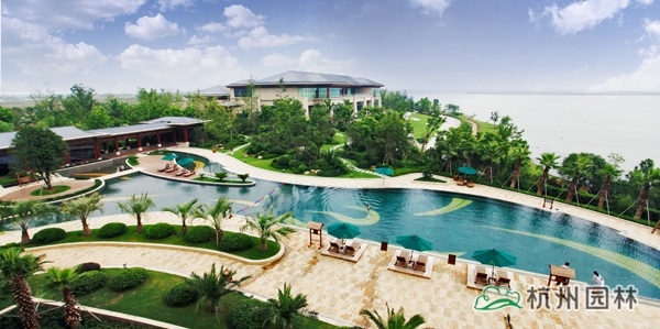 如今,走進(jìn)吳江東太湖溫泉度假酒店,開(kāi)闊大氣的入口景觀,整齊劃一的行道樹,道路兩側(cè)花境式的植物組團(tuán),首先帶給人一種高端、原生態(tài)的感覺(jué)。隨著蜿蜒的園路不斷延伸,更多的園林美景一一呈現(xiàn):開(kāi)闊的草坪起伏有致,自然式的花境布置清新雅致,造型獨(dú)特的黑松、女貞盡顯莊嚴(yán)華貴,婚禮草坪處處充滿浪漫氣息,露天泳池彌漫著濃郁的熱帶風(fēng)情,溫泉泡池區(qū)懷舊氣息撲面而來(lái),湖邊的觀景平臺(tái)則將自然美景盡收眼底……大氣中盡顯華貴雍容,細(xì)節(jié)中隨處可見(jiàn)精致品味,文化氣息處處流轉(zhuǎn),自然美景比比皆是,園林與建筑渾然一體。“雖由人作,宛自天開(kāi)”,是對(duì)該項(xiàng)目最凝煉的贊譽(yù)。
