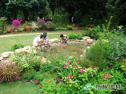 走進園內(nèi),蜿蜒的溪流和溪岸邊的景致野趣妙生,一下子撲入視野,清澈的溪水、光滑的卵石、可愛的小蝌蚪,與岸邊的銀邊菖蒲、水生鳶尾、花葉美人蕉、花葉蘆竹等水生植物一起,營造出生態(tài)、自然的河流景觀。“這條溪流,其實是我們杭州的母親河——錢塘江的縮影,通過這條溪流的營造,我們想呼吁更多的人保護生態(tài)、愛護環(huán)境,讓我們的母親河永遠干凈、清澈?!惫绾喍痰脑捳Z中,透露出的是一名園林人渴望更多人關(guān)注水生態(tài)環(huán)境的殷殷期盼。