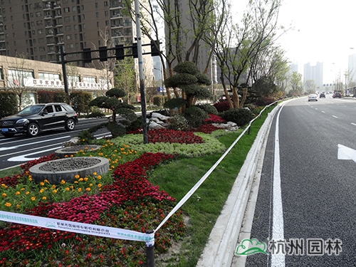 在新塘路工程現(xiàn)場(chǎng),李強(qiáng)一行聽取了杭州市園林綠化股份有限公司總裁張炎良關(guān)于工程建設(shè)情況的匯報(bào),并提出要求,從小處著眼,把道路環(huán)境整治做精做細(xì)。新塘路是杭州火車東站集散旅客的主要干道,現(xiàn)已初步實(shí)現(xiàn)交通優(yōu)化,其中,新風(fēng)路至鳳起東路段景觀效果已初步顯現(xiàn),豐富的植物配置、色彩鮮艷的草花、自然的景石,使得這段道路顯得開闊大氣,充滿生機(jī)。