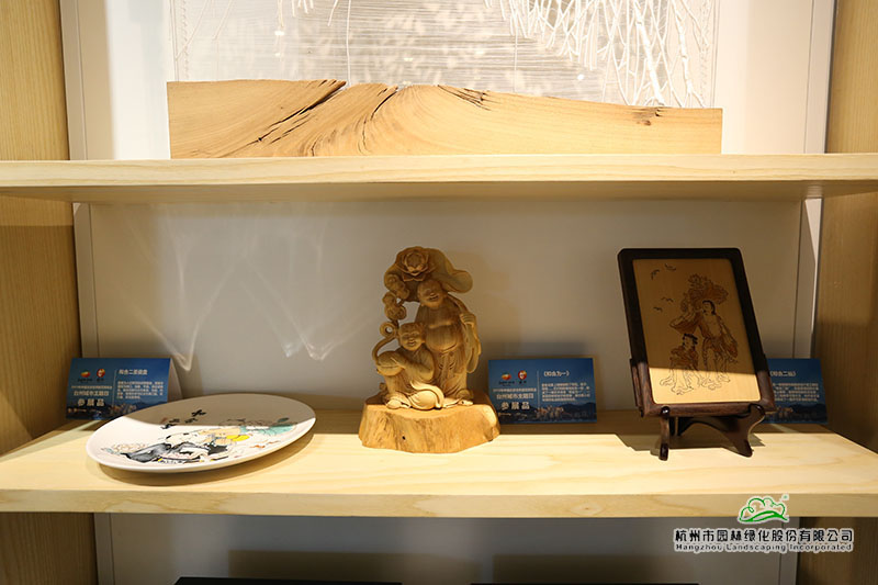 負一層展廳內(nèi),不僅循環(huán)播放著臺州城市形象、旅游景區(qū)、山海風光、生態(tài)文明建設、“兩山”理論成果的宣傳片,還展示了臺州特色的茶葉、烏藥黃精、楊梅制品、無患子系列產(chǎn)品、木竹工藝品等特色林產(chǎn)品。
