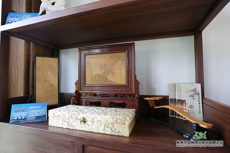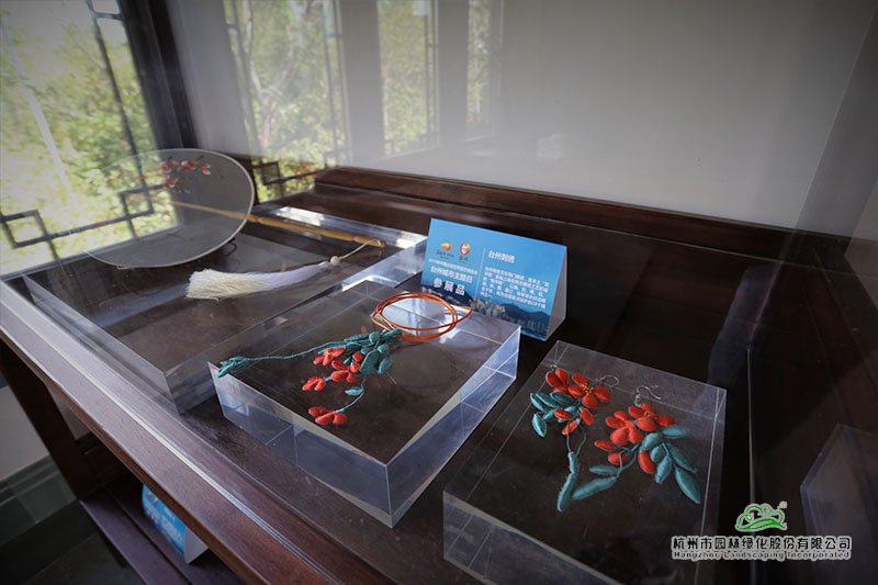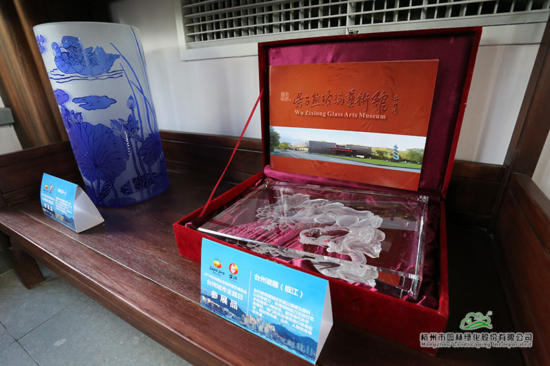 在以浙派民居為風格的主題建筑“富春山居”內(nèi),展示著來自仙居的無骨花燈、溫嶺的石雕、黃巖的翻簧竹雕、椒江的臺州玻雕、臺州刺繡等精美的展品。