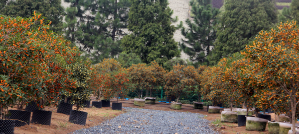 桂花是基地的主導(dǎo)苗木品種,公司依托雄厚的專業(yè)力量和研發(fā)能力,運用現(xiàn)代化的繁育設(shè)施和技術(shù),生產(chǎn)各類桂花觀賞盆栽苗、品種容器苗、工程苗、地被容器苗和林木容器苗等,桂花研發(fā)和產(chǎn)業(yè)化程度達到國內(nèi)外領(lǐng)先水平,是“中國桂花品種繁育中心”,承擔(dān)著國內(nèi)外專家的桂花課題研究、交流考察、新品種研發(fā)任務(wù);建有中國第一個桂花品種資源庫,收集桂花品種100多個,是國際上收集桂花品種最多最全的種質(zhì)資源庫之一;是國際桂花登錄組織認可的桂花品種國際測試中心;自主研發(fā)了“杭州黃”等4個桂花新品種并通過省級審定,擁有自主知識產(chǎn)權(quán);承擔(dān)的科研項目“桂花品種基因(種質(zhì)資源)庫建設(shè)與優(yōu)良品種選育推廣”榮獲“2007年度杭州市科技進步一等獎”等,在桂花的科研方面,可謂是碩果累累。