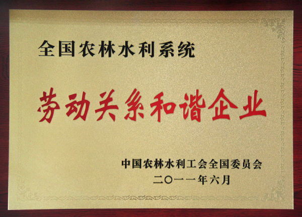 公司榮獲“全國農(nóng)林水利系統(tǒng)勞動關(guān)系和諧企業(yè)”稱號